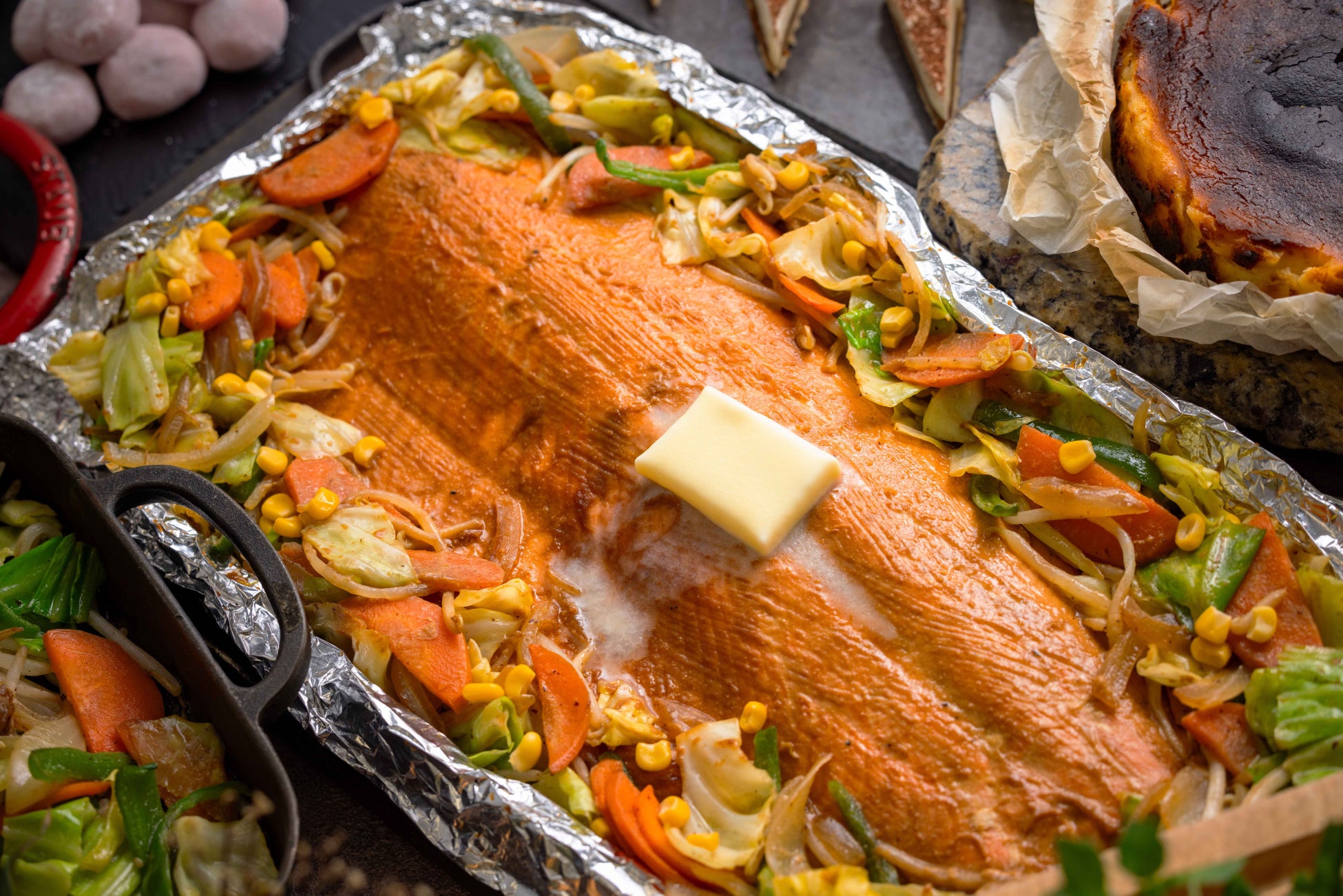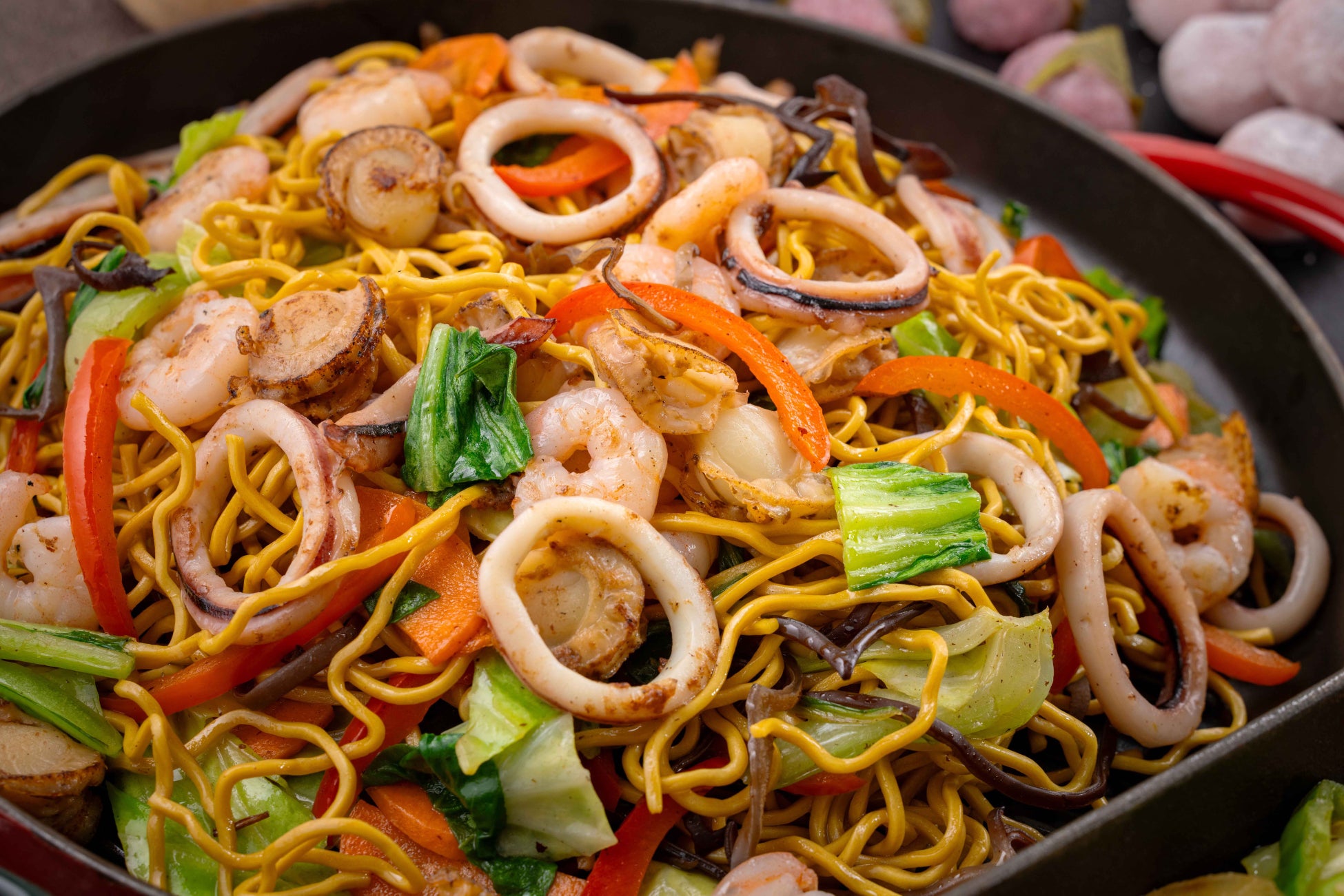 ◇パフォーマンスエリアにてシェフが目の前で仕上げて提供する北海道産の昆布醤油を使用した海鮮焼きそば、また温製料理コーナーには鮭のちゃんちゃん焼き、スープカレーといった北海道の名物や郷土料理が勢揃い。