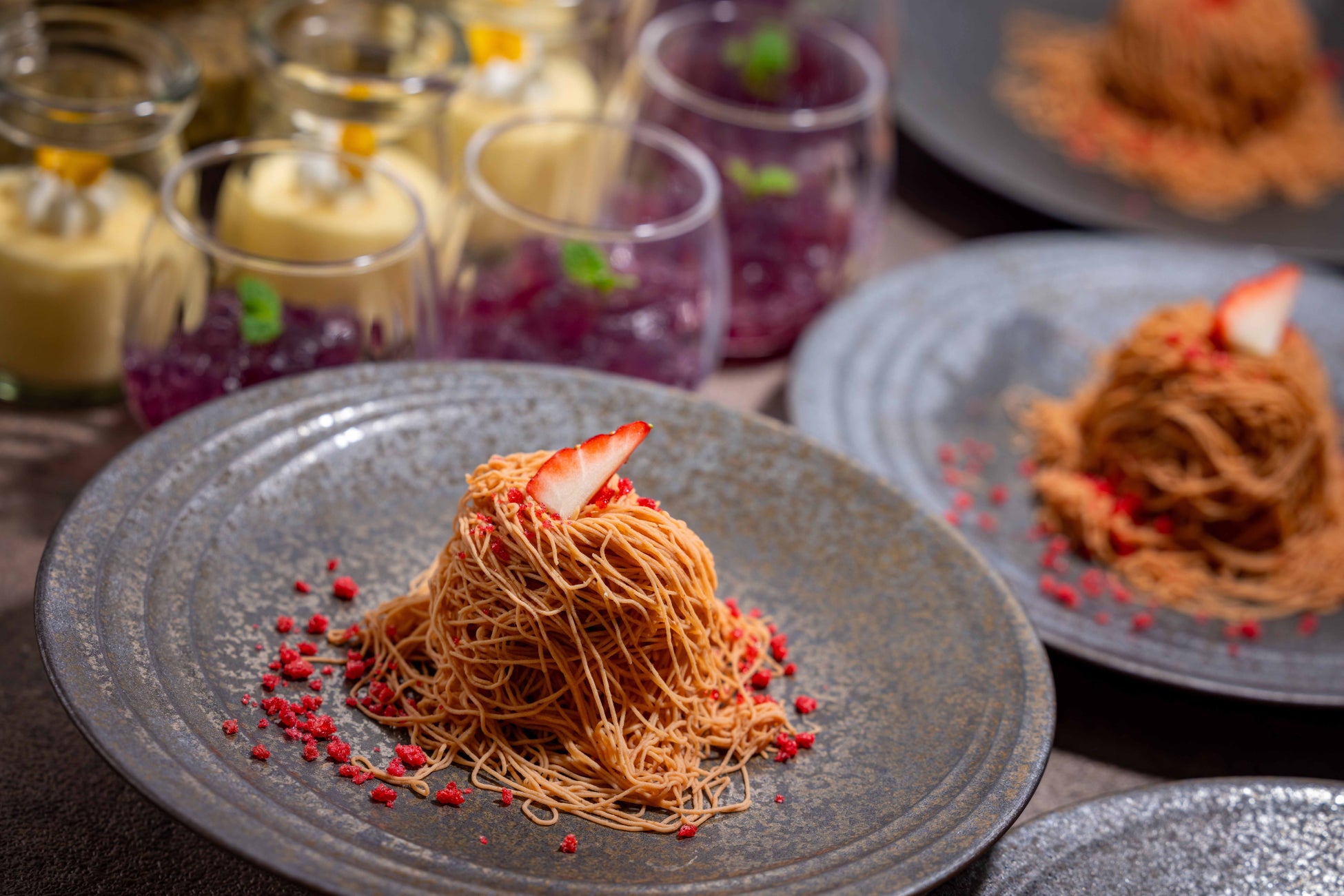 ◇ドルチェコーナーでは、ゲストの目の前で絞りたてをご提供する、大人気しぼりたてクリームのモンブランをはじめ、北海道産クリームチーズを使用したバスクチーズケーキやコーン茶のプリン、ハスカップゼリーなどをご用意。「春×北海道」を楽しみながらお召し上がりいただけます。