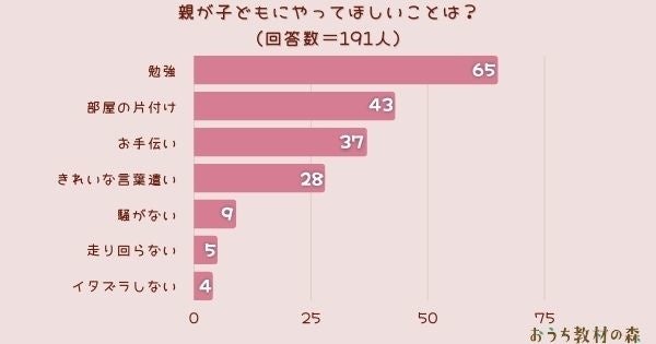 - 【総括】今回のアンケートで親が子どもにやってほしいこと1位は『勉強』でした
