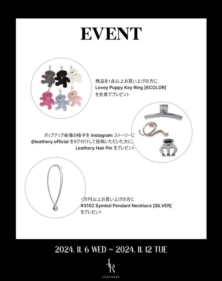 ②POPUP会場の様子をInstagramのストーリーズに@leathery.officialをタグ付けして、投稿をしてくれた方にLeathery Hair Pinをプレゼント。