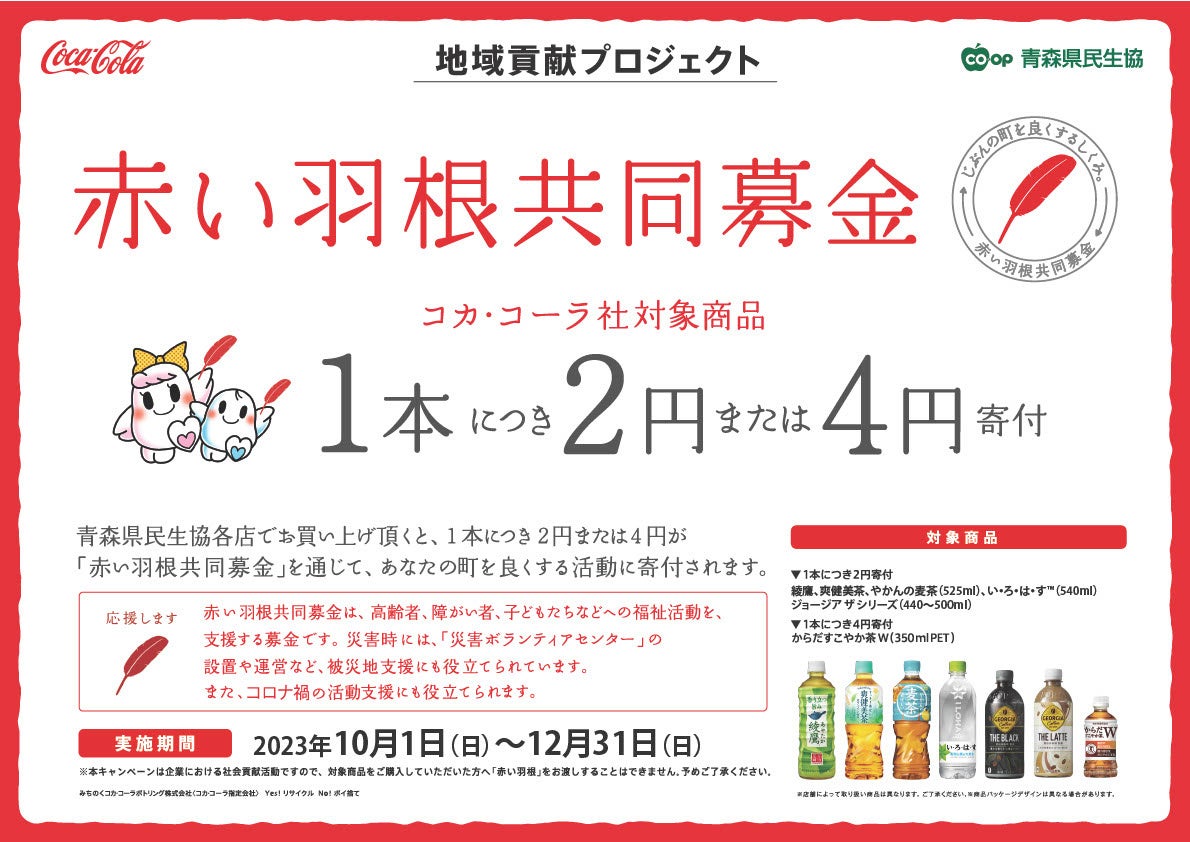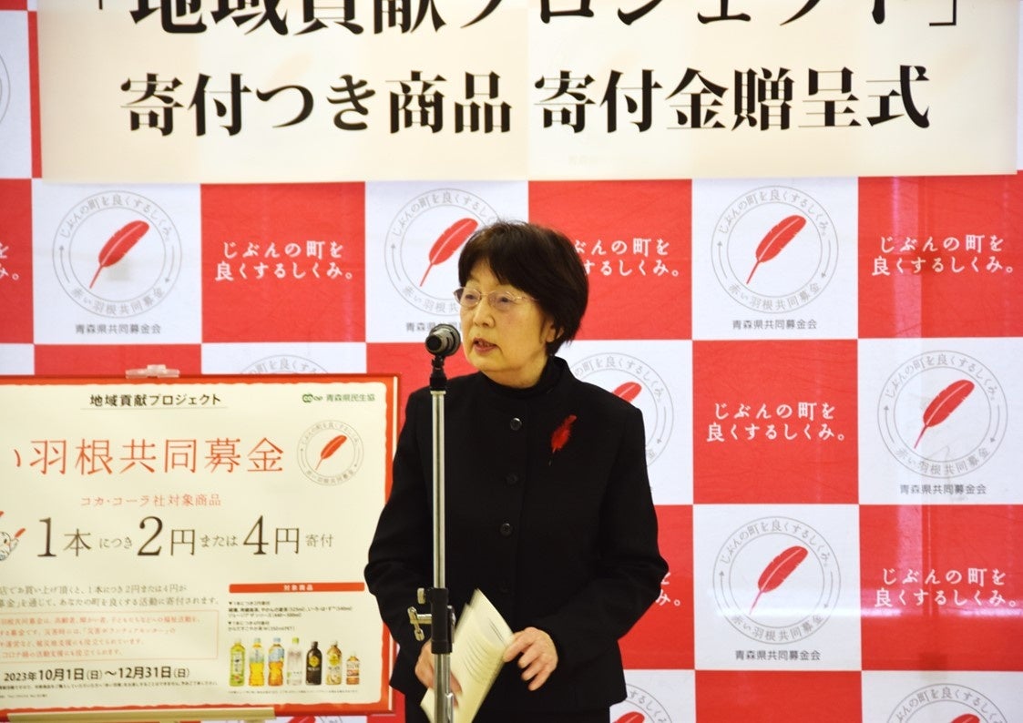 みちのくコカ・コーラボトリング、青森県民生活協同組合との共同企画「地域貢献プロジェクト」の売り上げの一部を赤い羽根共同募金へ寄付
