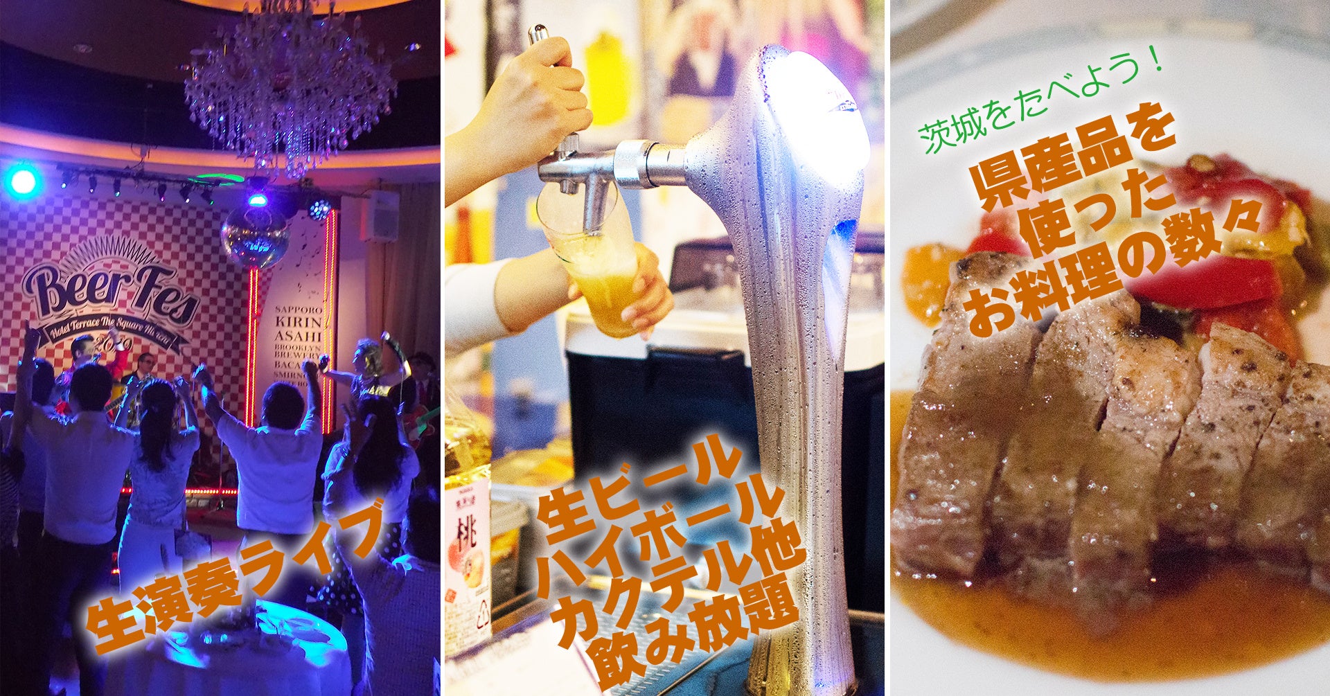 【ホテルテラスザスクエア⽇⽴】 日立駅近ホテルで食べ放題・飲み放題・生演奏ライブのイベント「ビアフェス2024」が4年ぶりにマスクなしで開催!「茨城をたべよう!」県産の食材を使ったお料理も並びます!