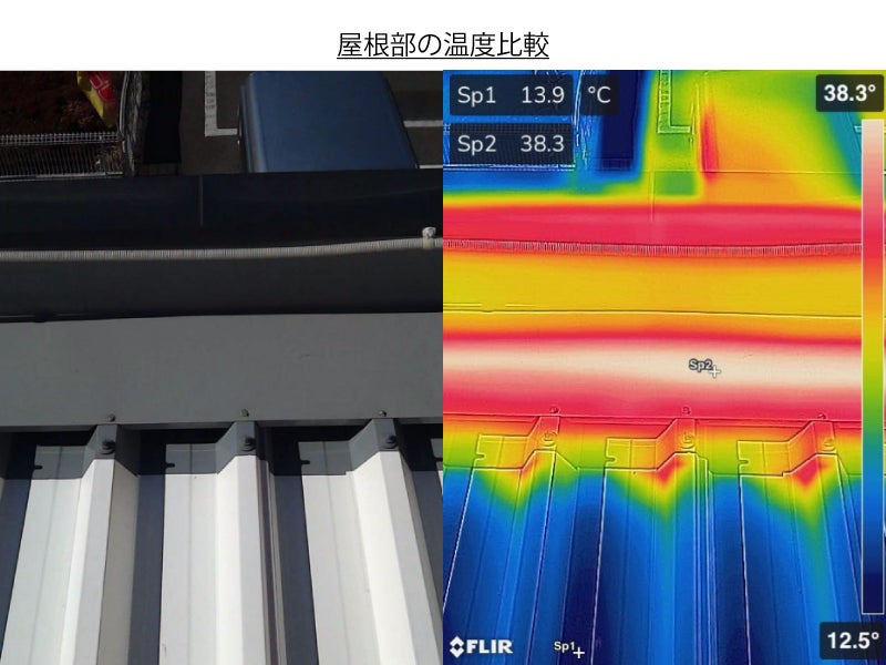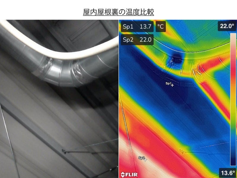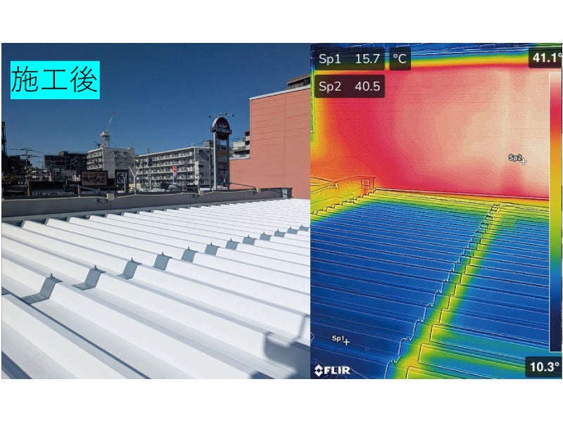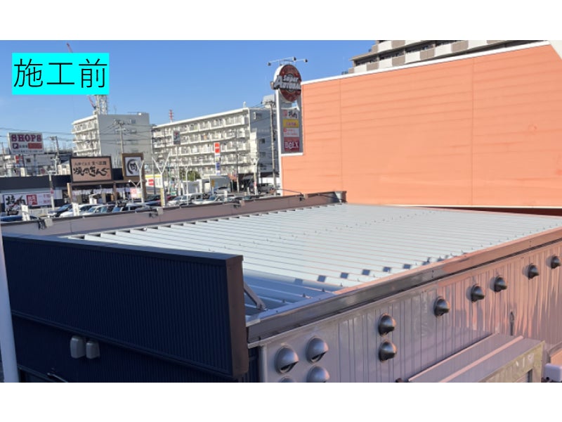 従前、当社ではハゼ式折板屋根へのルーフシェード工法、コンクリート屋根への防水シート工法等の専門的な工法開発をメーカーと共同で進めてきましたが、新商品のSPACECOOLフィルム(高耐久)の発売により、当施工事例にあるような、汎用的な建物の屋根にも容易に施工できるよう商品を改良・開発をして参ります。