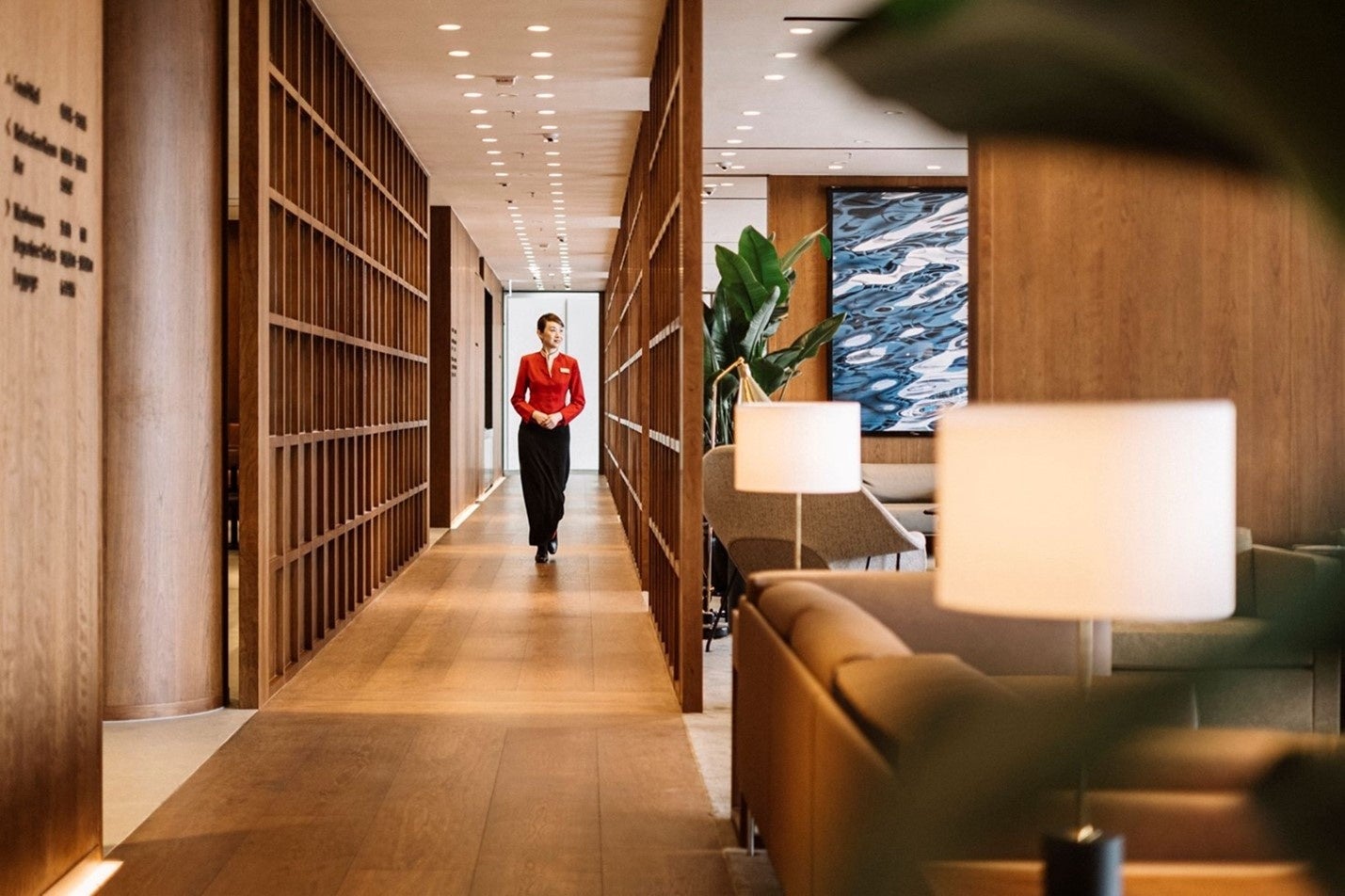「ザ・ブリッジ」では、チェリー材、格子状のスクリーン、黒御影石と大理石を基調とした素材に加え、厳選した観葉植物と家具、受賞歴のある「天空のギャラリー」のオリジナルアート作品が融合し、まるで自宅のような一体感と調和のある空間を創り出しています。