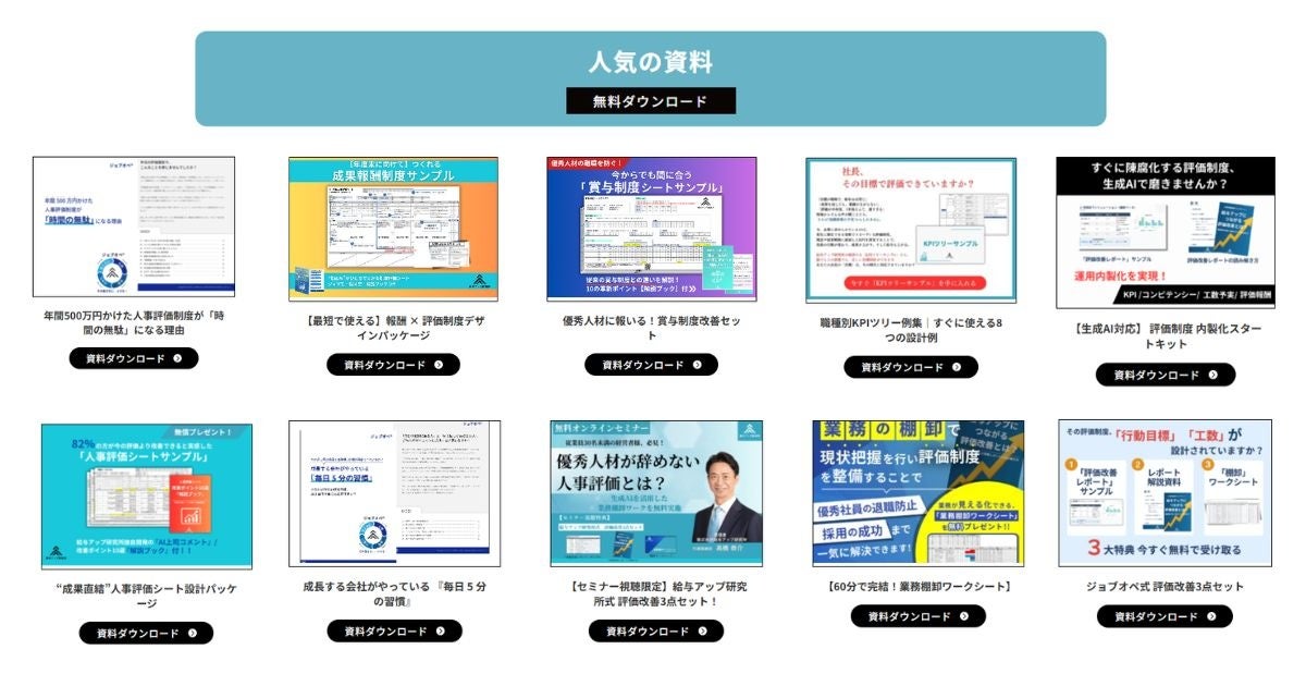 さらに、評価制度の設計・運用に関するお役立ち資料も無料公開しています。