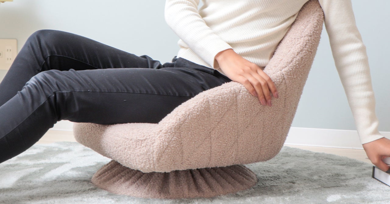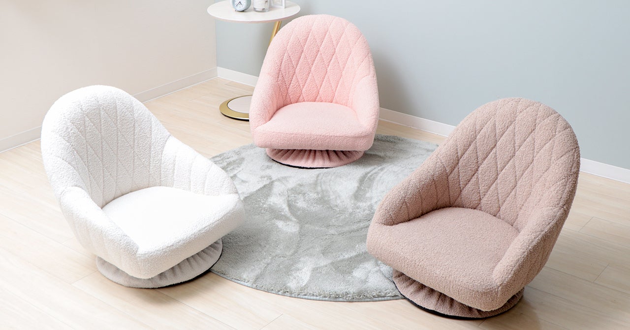 高すぎると邪魔になる。低すぎると意味がない。そんな女性のわがままを叶えたアーム一体型のシートデザインが、体をしっかりとフォールドしてくれます。まるで包み込まれるような座り心地。360度くるっと回転するので、狭いスペースでも立ち座りがしやすく、コンパクトなお部屋にもぴったり。