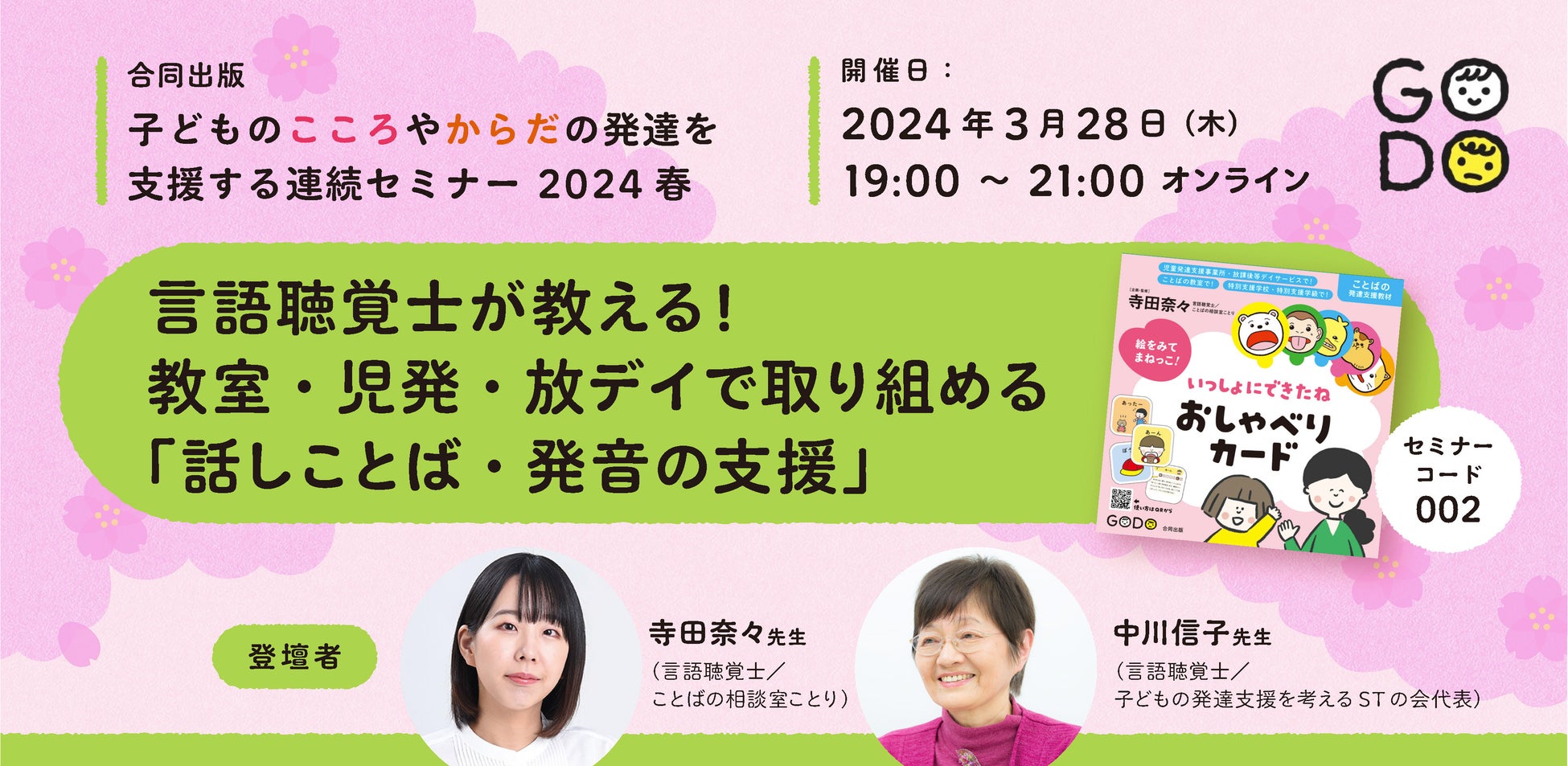 刊行を記念して、2024年3月28日に「言語聴覚士が教える!教室・児発・放デイで取り組める「話しことば・発音の支援」」を開催されます。