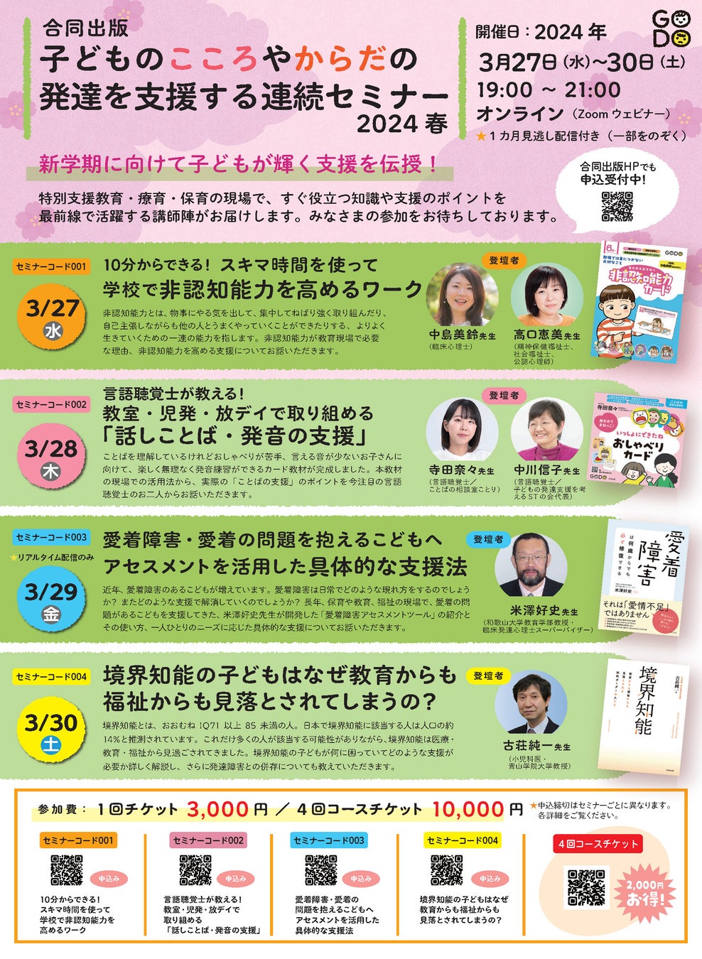 さらに、「非認知能力」「愛着障害」「境界知能」をテーマにしたセミナーも開催!