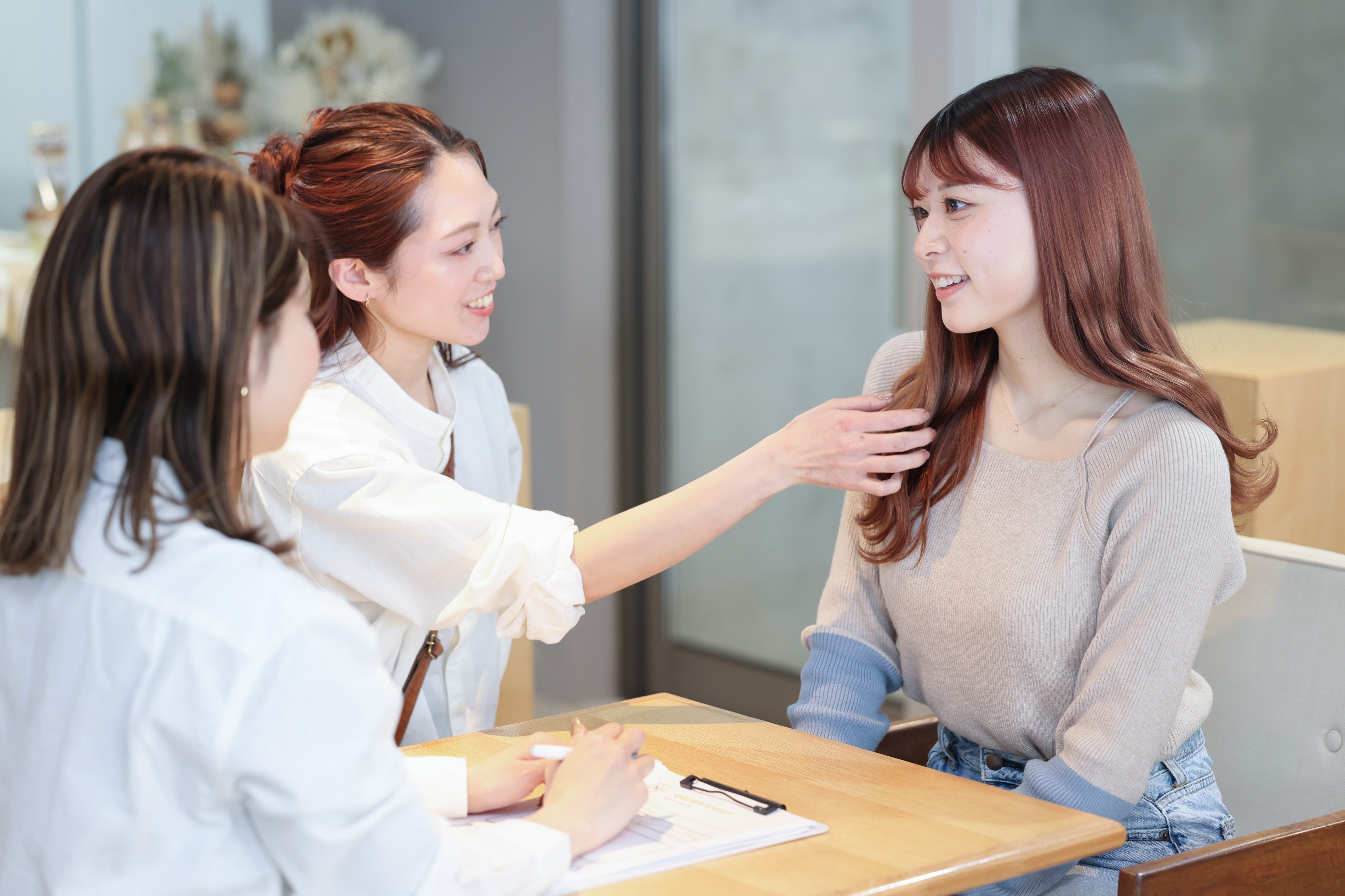 4月から新社会人になるにあたり、自分なりの「社会人っぽさ」を胸に抱きながら来店する学生。施術の前にまずはコーチとヘアスタイリストとともにカウンセリングを行い、本人の理想の社会人像を紐解きます。提案するヘアスタイルは、周りの目やステレオタイプを気にして選んだ「社会人髪」ではなく、なりたい大人に近づくための「社会人髪」です。