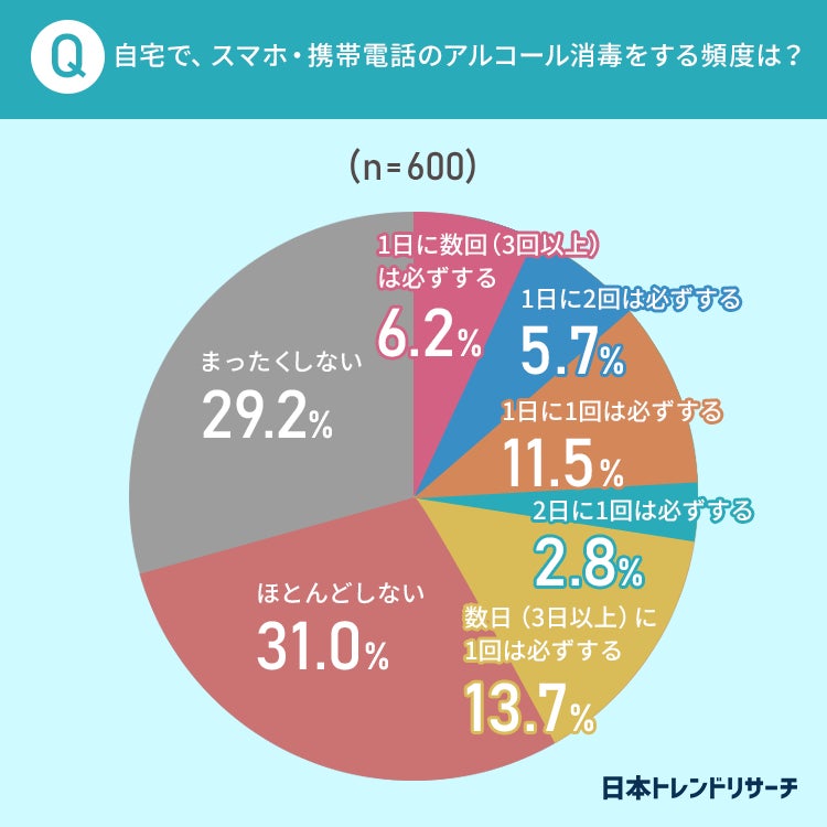 最後に、自宅で、スマホ・携帯電話のアルコール消毒をする頻度について聞きました。