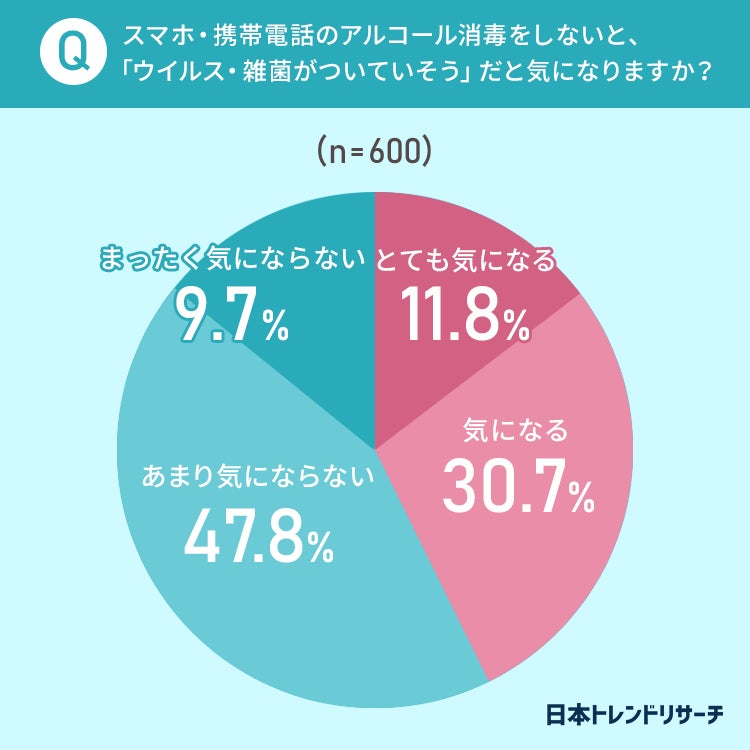 一方で、42.5%の方はスマホや携帯もアルコール消毒をしないと「気になる」と回答していました。