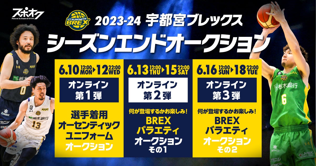 株式会社モバオク(本社:東京都渋谷区、代表取締役社長:生田目 知之、以下モバオク)がエンゲート株式会社(本社:東京都中央区、代表取締役:城⼾ 幸⼀郎、以下エンゲート)と業務提携し提供するスポーツチーム公式オークションサービス「スポオク」にて、B.LEAGUE所属の宇都宮ブレックスが実施する「2023-24 宇都宮ブレックス シーズンエンドオークション」を2024年6月10日(月)から3回に分けて開始いたします。