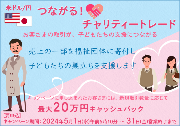 【セントラル短資FX】米ドル/円 つながる!チャリティートレードキャンペーンのお知らせ