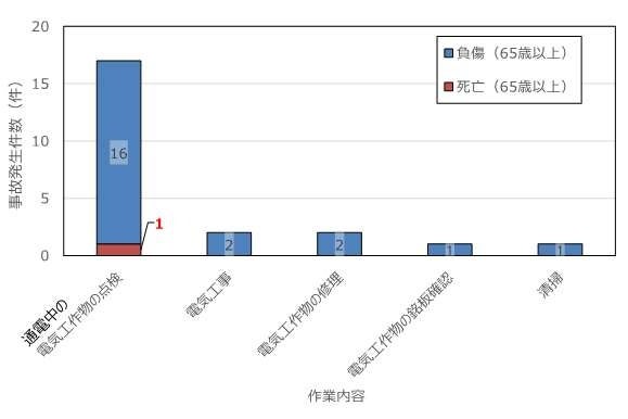 [図9] 高齢作業者(65歳以上)における作業内容別の感電死傷事故件数(2019~2021年度)