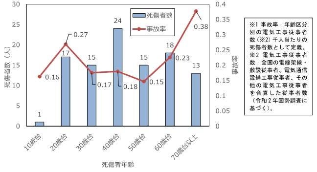 ※公衆及び年齢不明の死傷者による感電死傷事故を除く。