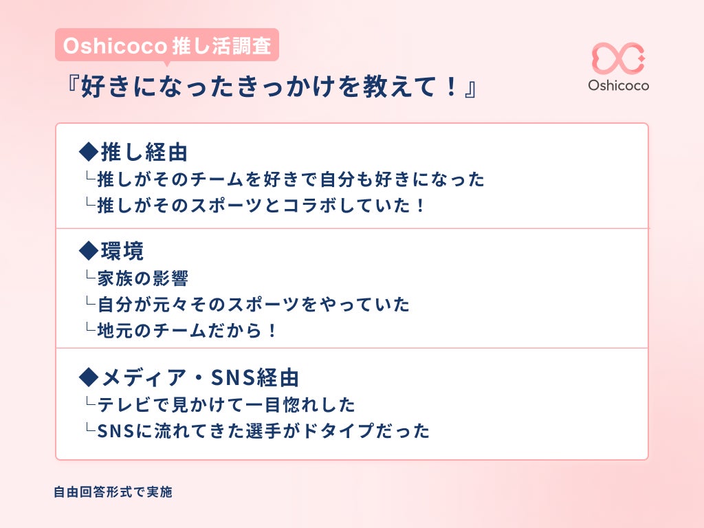 SNS総フォロワー11万人の「推し活応援メディア」を運営する株式会社Oshicocoは、SNSフォロワーの推し活層を対象に『スポーツ推し活』に関するアンケートを実施しました。