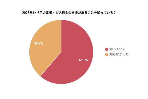 2026年1~3月の電気・ガス料金支援を「知っている」方は61.3%