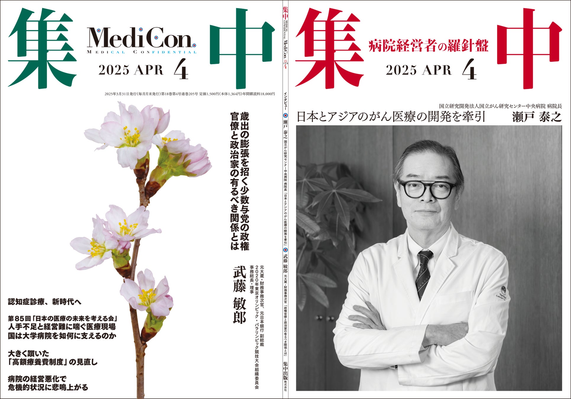 医療情報誌 月刊『集中』2025年4月号 巻頭インタビュー 瀬戸泰之・国立研究開発法人国立がん研究センター中央病院 病院長/集中OPINION 武藤 敏郎・元大蔵・財務事務次官、元日本銀行 副総裁 他