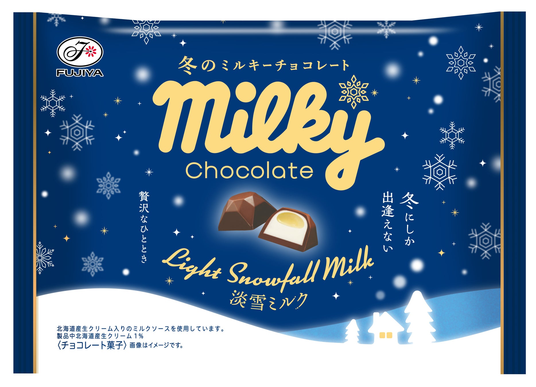 ミルキーのおいしさをチョコレートにぎゅっと閉じこめた「ミルキーチョコレート」より、冬季限定の新商品が登場します。まるで淡雪のように口の中でスーッと溶けるくちどけの、冬にしか出逢えない贅沢なおいしさをお楽しみください。