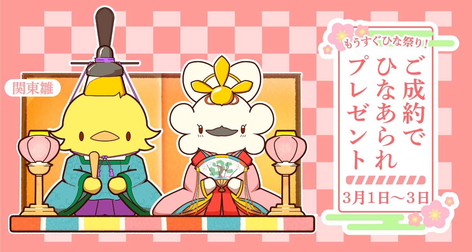 今回は、日本の伝統行事“ひな祭り”に合わせたプレゼントキャンペーンを開催します。既にご家庭で雛人形を飾っている方も多いのではないでしょうか。ハマグリのお吸い物やちらし寿司などご馳走と共に季節行事をお楽しみくださいませ。