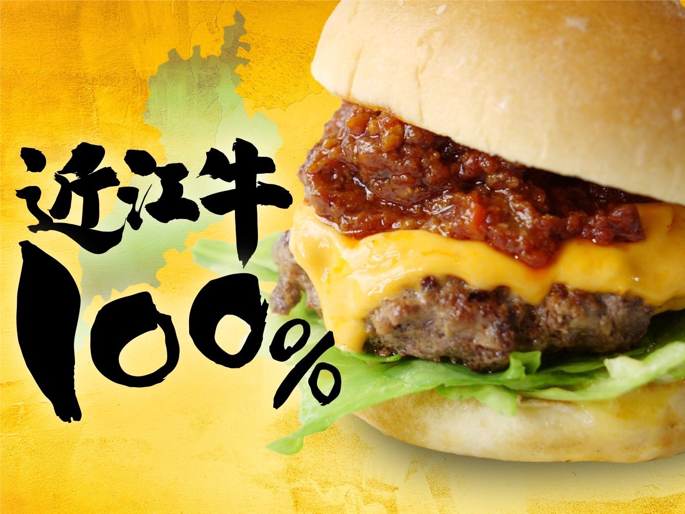 ふんわりジューシーな肉質の「近江牛100%パテ ィ」と、とろ〜り濃厚なチェダーチーズの組み合 わせ。上質な脂が口の中でやさしく溶け広がり、 あふれる旨みと香りをダイレクトに愉しむ事がで きます。