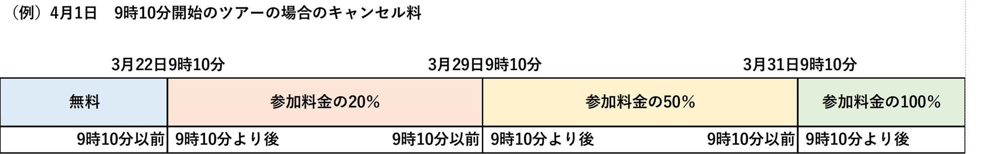ツアー参加日時の前日の9時10分より後および無連絡不参加 |