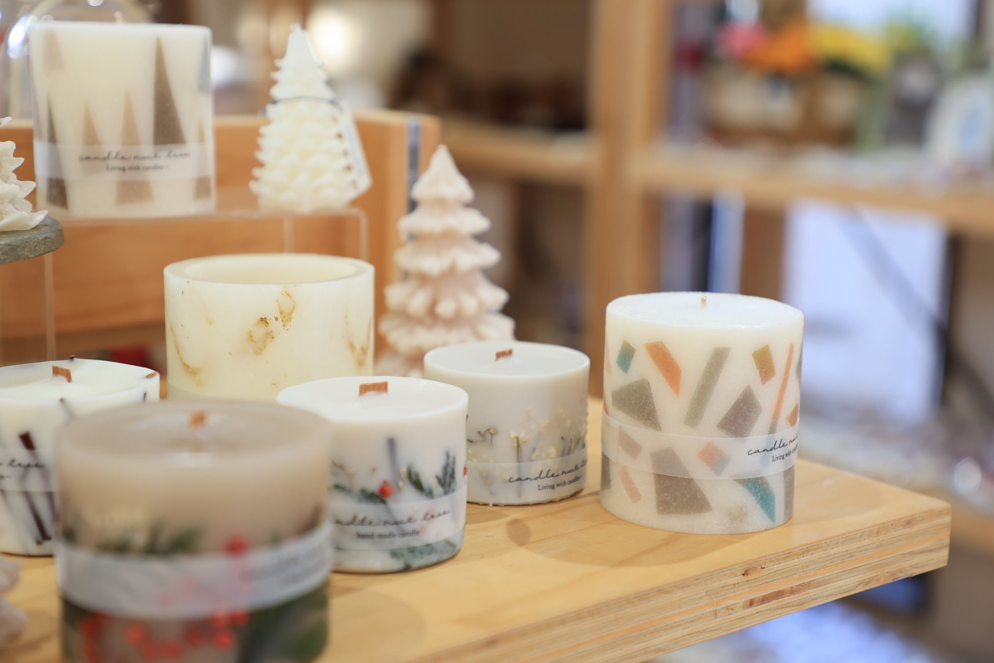 開園日は園内の「Rose Shop 花の森」でクラフト作家さんたちの作品や、キャンドル作家さんのキャンドルを販売しています。クリスマスプレゼントにもおすすめのアイテムがそろっていますので、お買い物もあわせてお楽しみください。