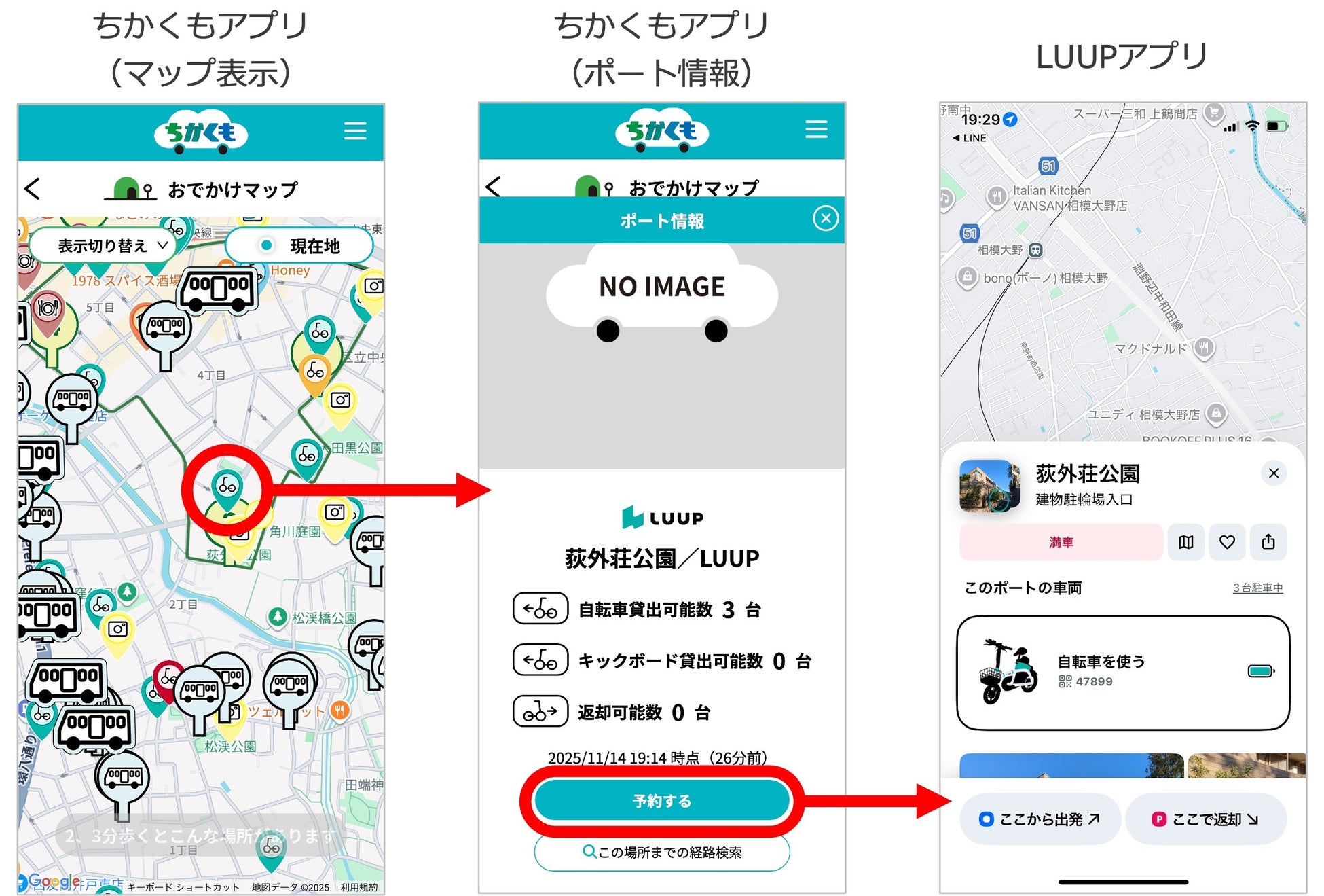 地域内での近隣移動や、自宅から駅/駅から目的地といったラストワンマイルの移動手段の確保は、利便性向上の鍵となります。このようなラストワンマイルの課題に対し、電動キックボードや電動アシスト自転車といった手軽なマイクロモビリティをシェアできる「LUUP」の情報を「ちかくも」に連携することで、公共交通機関の利用を補完し、杉並区内における多様な移動ニーズに応え、スムーズな移動や回遊性の向上に貢献することを目指しています。