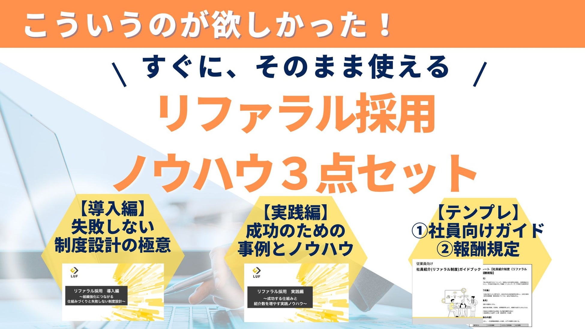 この度LUFが公開する3点セットは、リファラル採用を成功に導くためのノウハウを体系的にまとめた実践的な資料となっています!