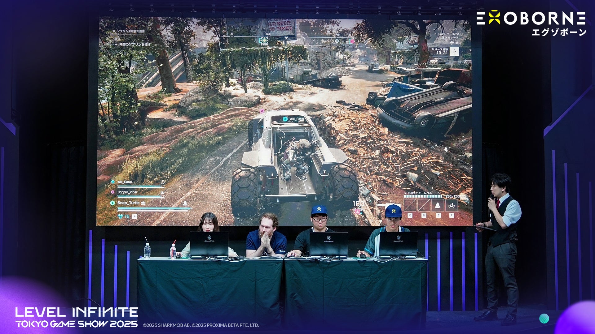 自然災害により荒廃した世界を舞台とするオープンワールドエクストラクションシューターの『EXOBORNE』。本作エリアでは、初となるゲーム試遊を展開しました。プレイヤーは、3人体制のチームを組んだ上で外骨格のExo-Rigを装備し、絶えず変化し続ける過酷な気候の中でアイテムを集め、脱出を目指します。多くの来場者は、初対面となるプレイヤー同士にもかかわらず、お互いに上手く協力し合い、見事脱出を達成していました。またLevel Infiniteメインステージでは、プレイヤーと石田晴香さんと共にゲームをプレイし、スリル満点の脱出を体験。迫力満載のプレイ映像には、通りすがりの来場者も足を止めてしまうほどでした。