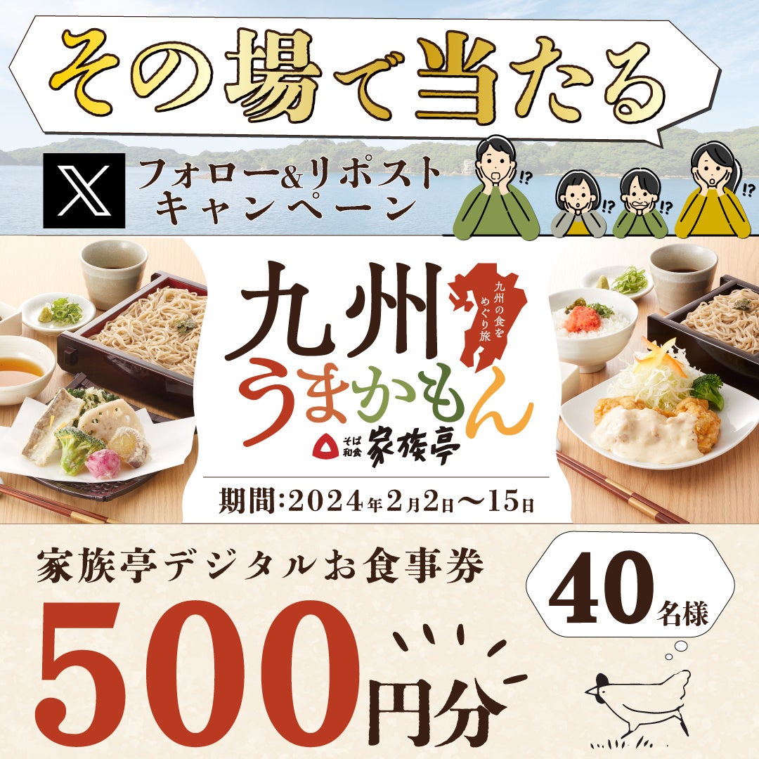 【九州うまかもん 九州の食をめぐり旅】開催記念 家族亭公式Xフォロー&リポストキャンペーン
