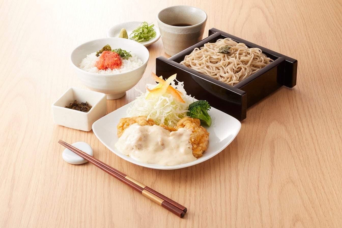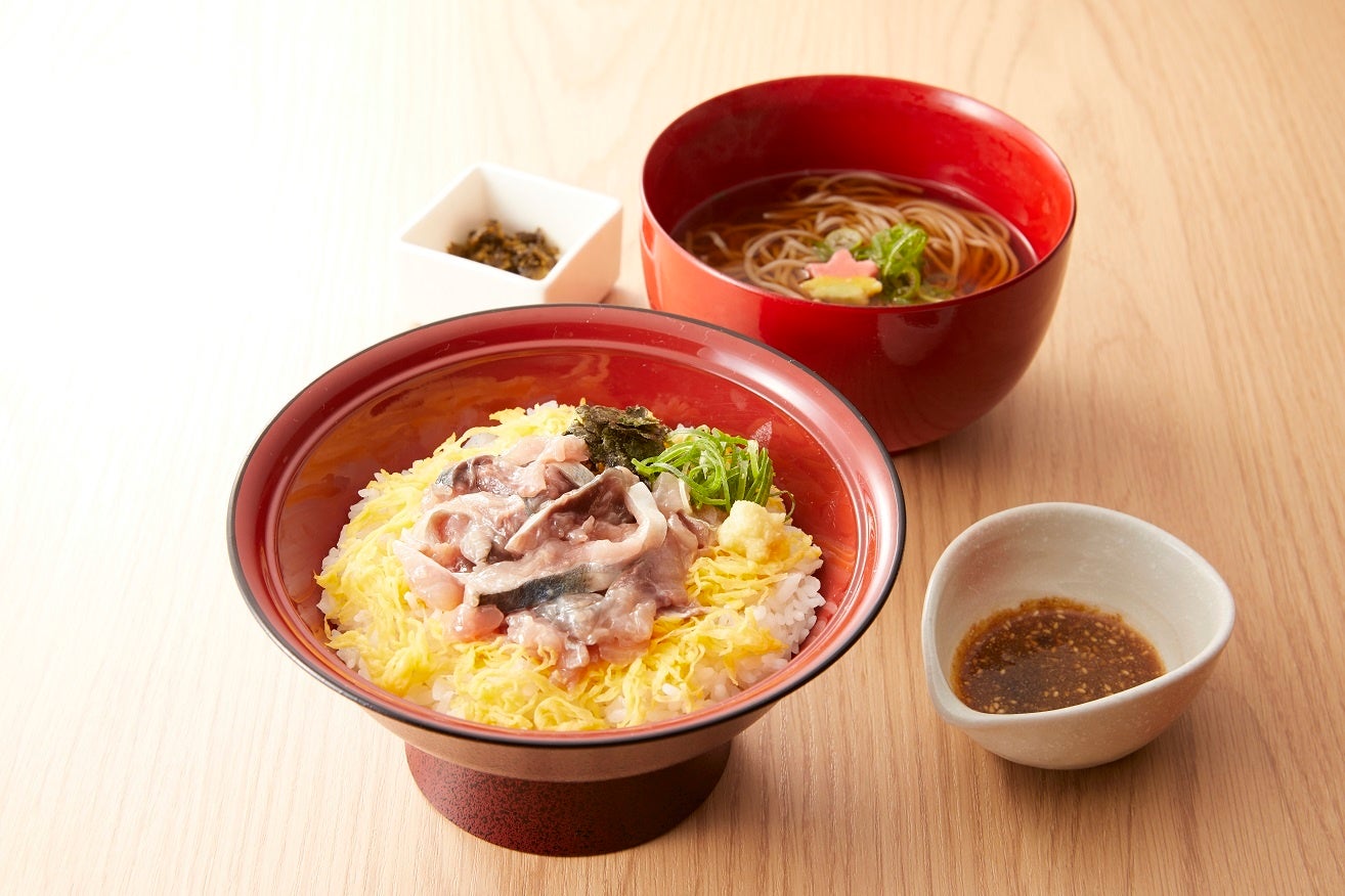 九州は日本で有数のあじの漁獲量を誇る地域です。そんな九州の脂の乗ったあじを丼にごましょうゆタレをお好みでかけてお召し上がりください。セットのおそばはミニかそば・ミニざるそばをお選びいたけます。