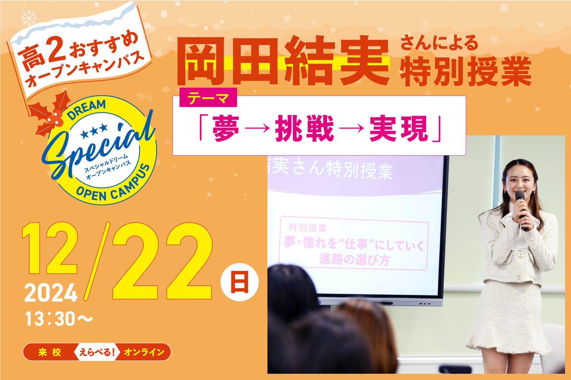 岡田結実が、特別講師に就任!「夢・憧れを仕事にする方法」を高校生に授業。12月22日(日)に開催【東京ビジネス・アカデミー】
