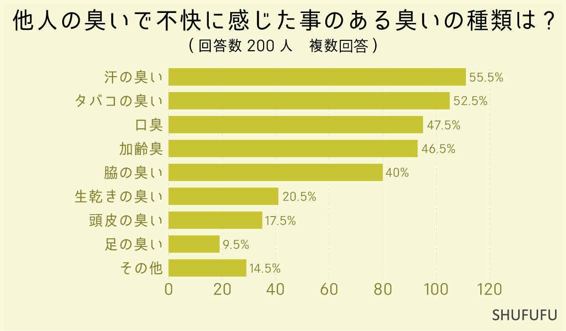 女性200人に「不快な臭い」に関するアンケート調査を行った所、