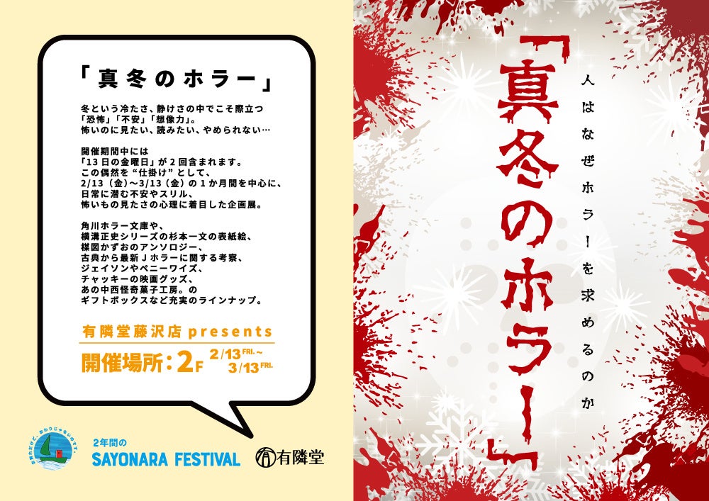 有隣堂 藤沢店「SAYONARA FESTIVAL」シリーズ第3弾2月12日より「真冬のホラー」企画展を開催