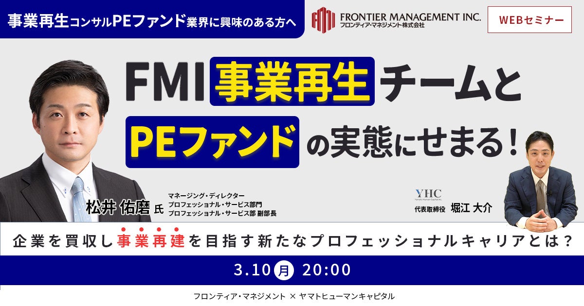 【3/10開催】フロンティア・マネジメント事業再生チームとPEファンドの実態にせまる!