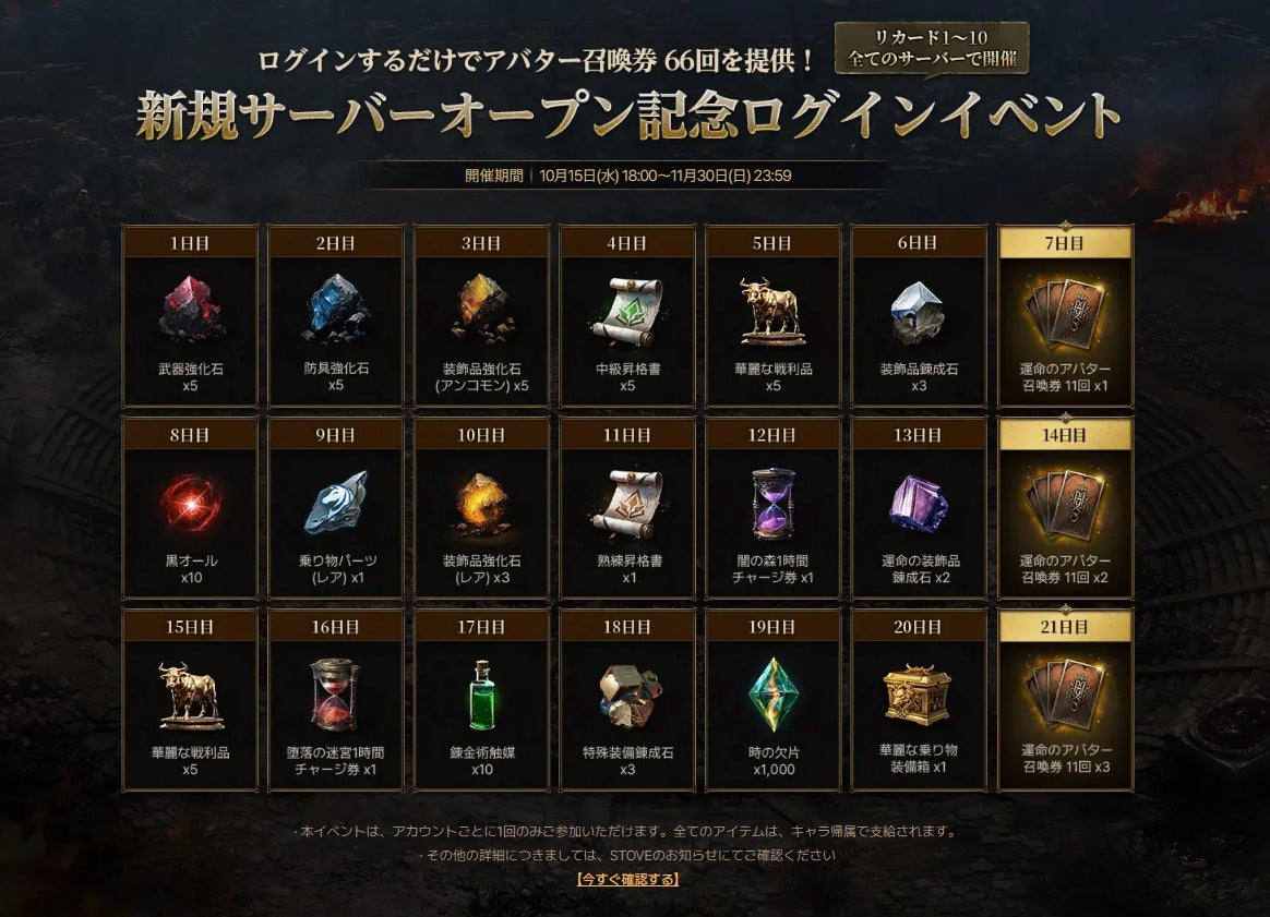 また、新サーバーを記念して、最大110回分の「運命のアバター召喚券」が獲得できるイベントなど、新規・既存ユーザーの両方に向けて豪華な特典が用意されています。