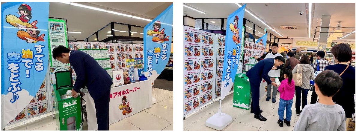 株式会社アオキスーパーは、持続可能な社会の実現に向けた新たな取り組みとして、日本航空株式会社(JAL)と連携し、ご家庭で使用済みとなった食用油を店頭で回収して『SAF(Sustainable Aviation Fuel/持続可能な航空燃料)』にリサイクルする取り組みを順次開始しております。