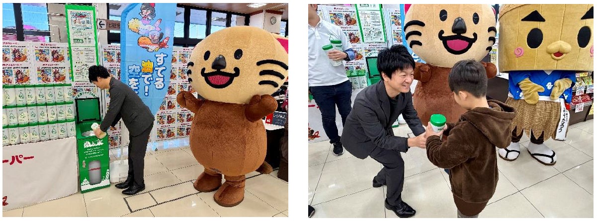 また、本イベントに先立って実施した『スターティングセレモニー』には、本取り組みにご賛同いただいた各自治体の市町長にもご参加いただき、廃食油をリサイクルBOXに注ぐセレモニーやボトルの配布などを通じて、地域全体でのリサイクル推進の機運を高めました。