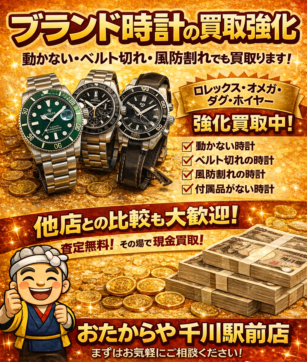 買取専門店「おたからや千川駅前店」は、このたびブランド時計の買取を強化いたしました。