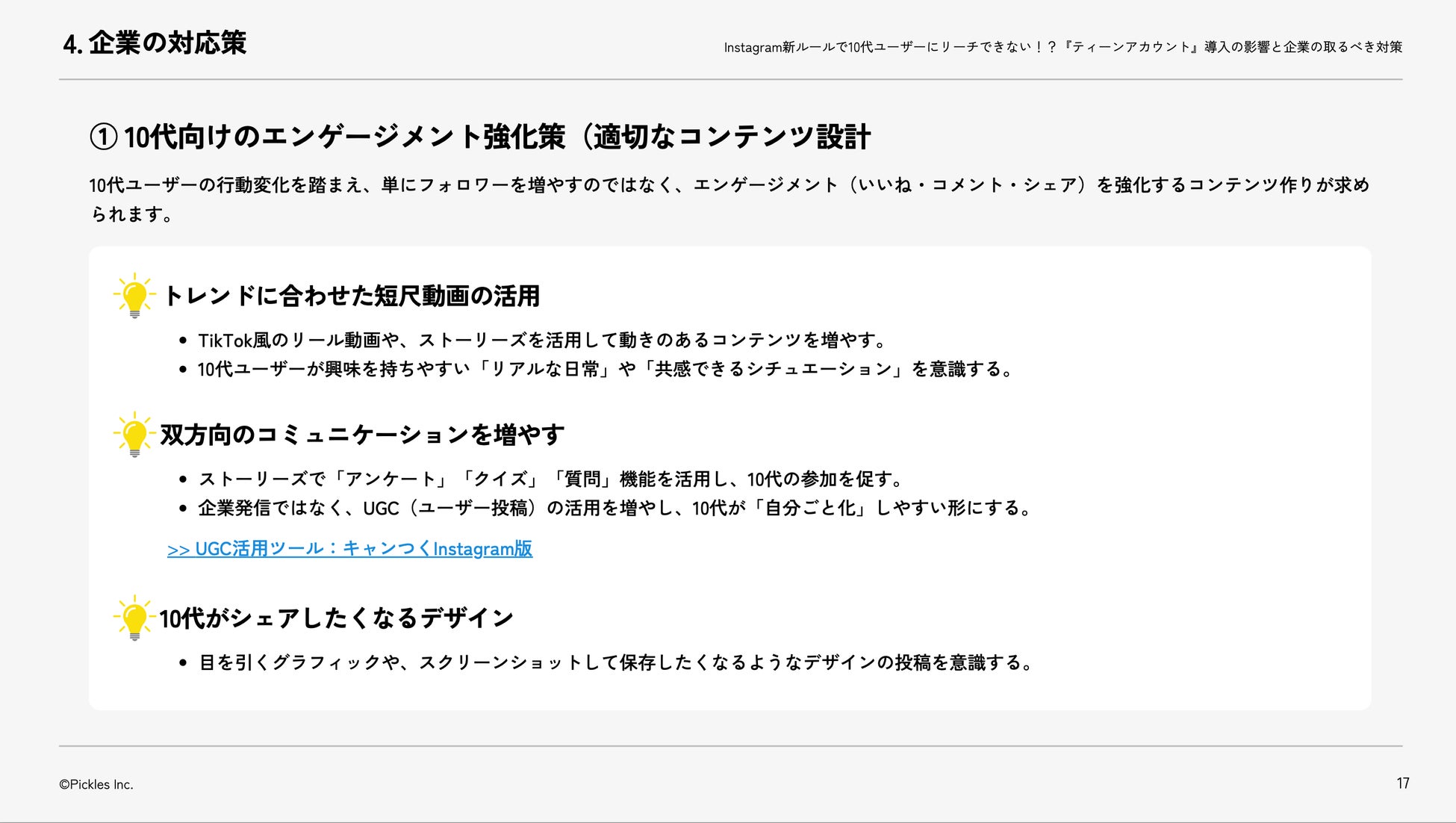 ひとりでも勝てるキャンペーンツール「キャンつく」を提供する株式会社ピクルス(以下、当社)は、『Instagram新ルールで10代ユーザーにリーチできない!? 『ティーンアカウント』導入の影響と企業の取るべき対策』の無料公開を開始いたしました。