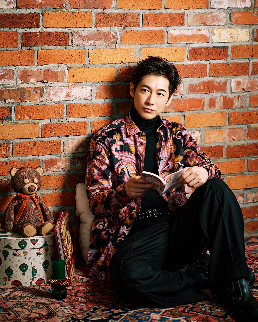 一方、ディーン・フジオカが纏うのは、ブラックに表現された、色鮮やかなピンクやマゼンタを基調としたボタニカルペイズリー柄が美しいシャツ。心躍るホリデーシーズンのムードを一層引き立てる、華やかなアイテムです。