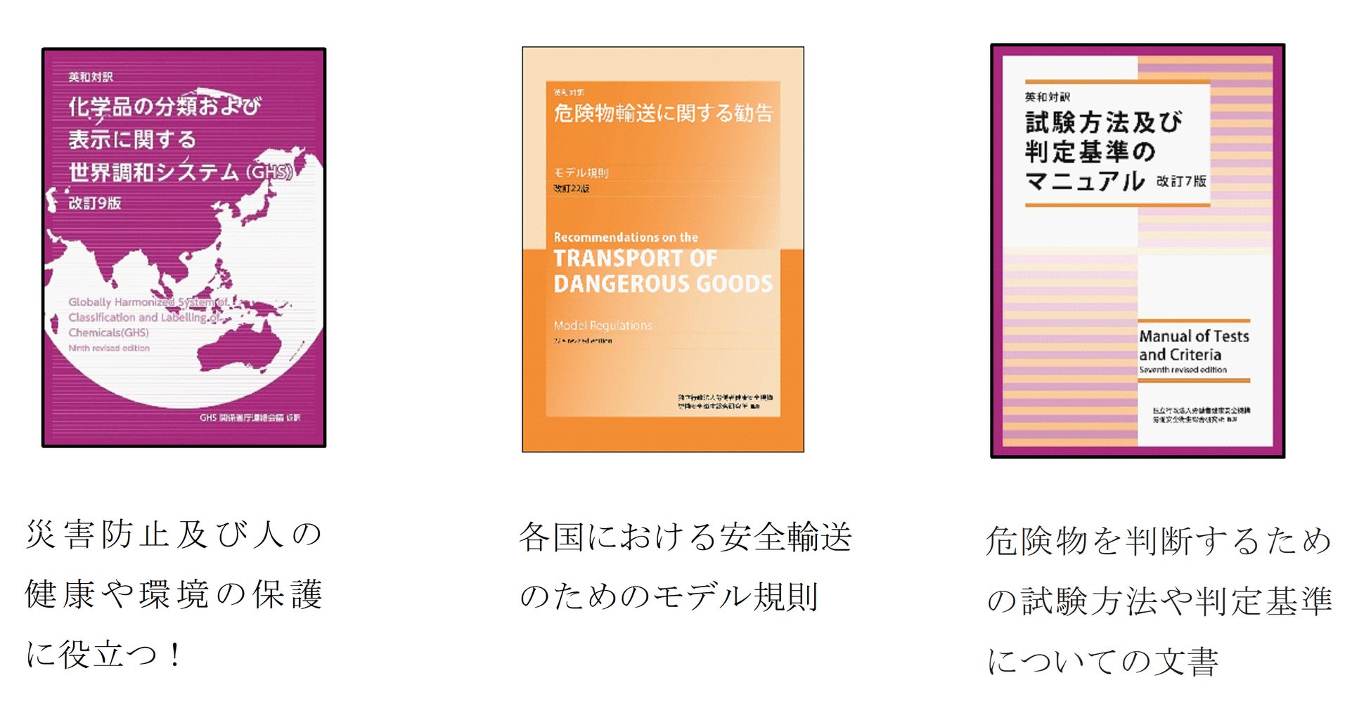 この度、国連より公表されたGHS改訂9版、TDG改訂22版、MTC改訂7版の英和対訳版を3冊同時発売いたしました。