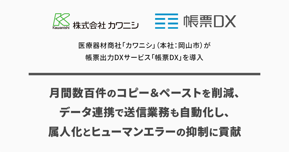 医療器材商社「カワニシ」(本社:岡山市)が帳票出力DXサービス「帳票DX」を導入