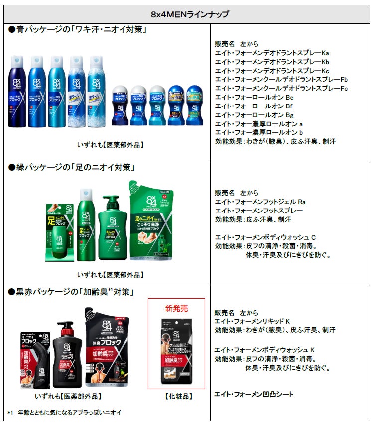 「8x4MEN」はこれからも男性の身だしなみ意識の変化に対応し、防臭効果と爽快感で男性の前向きな姿勢と行動をサポートしてまいります。