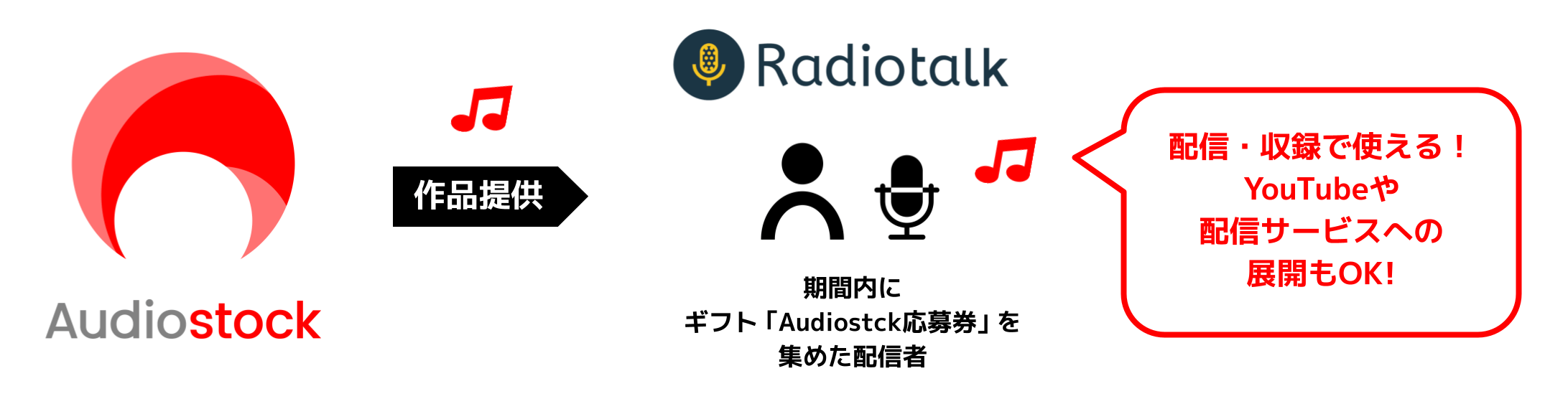 この度、80万点以上のBGMや効果音等を販売する世界最大級のストックミュージックサービス「Audiostock」 にて選定された「おすすめ効果音」の中から5点を、期間内に一定の条件を満たしたRadiotalkの配信者へプレゼントする新企画を8月24日より開始いたしました。