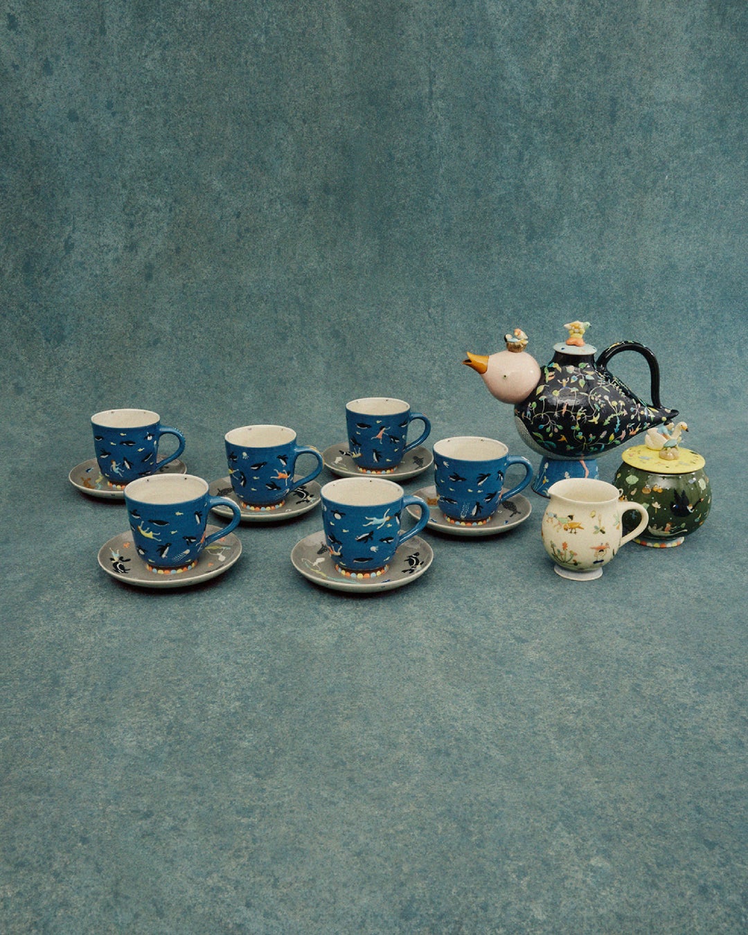 各アーティストが独自の方法で向き合うことで生まれたティーポット作品は、全体として世界各地における「お茶を淹れること」およびその文化における多様で豊かな伝統を活かしつつ、ポットの彫刻的造形を見つめ直すものとなっています。参加アーティストの多くは磁器や陶器といった伝統的なティーポットの素材を選んでいますが、そのアプローチや扱い方はそれぞれ異なり、さまざまな種類の釉薬、仕上げ、そして新しいテクスチャーの表現が取り入れられています。作品の多くでハンドルや注ぎ口といったティーポット特有のパーツに焦点が当てられているほか、長短のバランスを変え、スケールやプロポーションを反転させることで、見慣れたもののようでありながら従来の概念を覆すティーポットが生まれました。