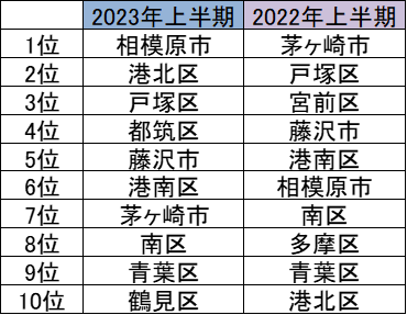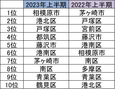 リスト サザビーズ インターナショナル リアルティ 2023年上半期 神奈川県の取引件数エリアランキング
