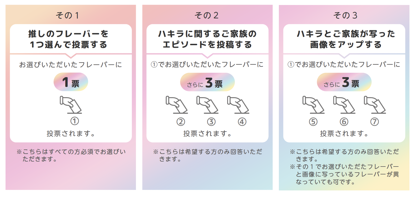 7つのハキラフレーバーから推しを選ぼう!1歳半頃からはじめるオーラルケア「ハキラフレーバー総選挙」 投票キャンペーンを開催