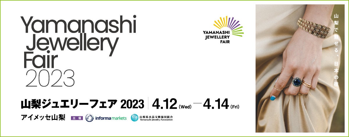 世界最大のジュエリートレードショー「ジュエリー&ジェムワールド香港(9月香港ショー)」を主催するインフォーマ社と、山梨県水晶宝飾協同組合(以下、水宝協)による共同主催のもと、2023年4月12日-14日の日程で「山梨ジュエリーフェア(以下、YJF)」が開催される。